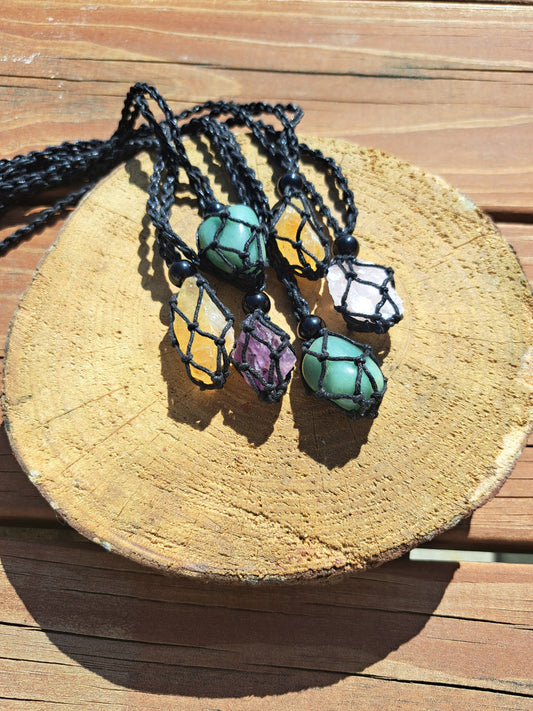 5 Star 10/10 fabulous! I absolutely love the knotted rope cradle/necklace all in one piece. It's sturdy and durable and feels very safe.. makes me feel happy wearing a big chunk of raw Herkimer Diamond! Love it and have had many people asking what it is.