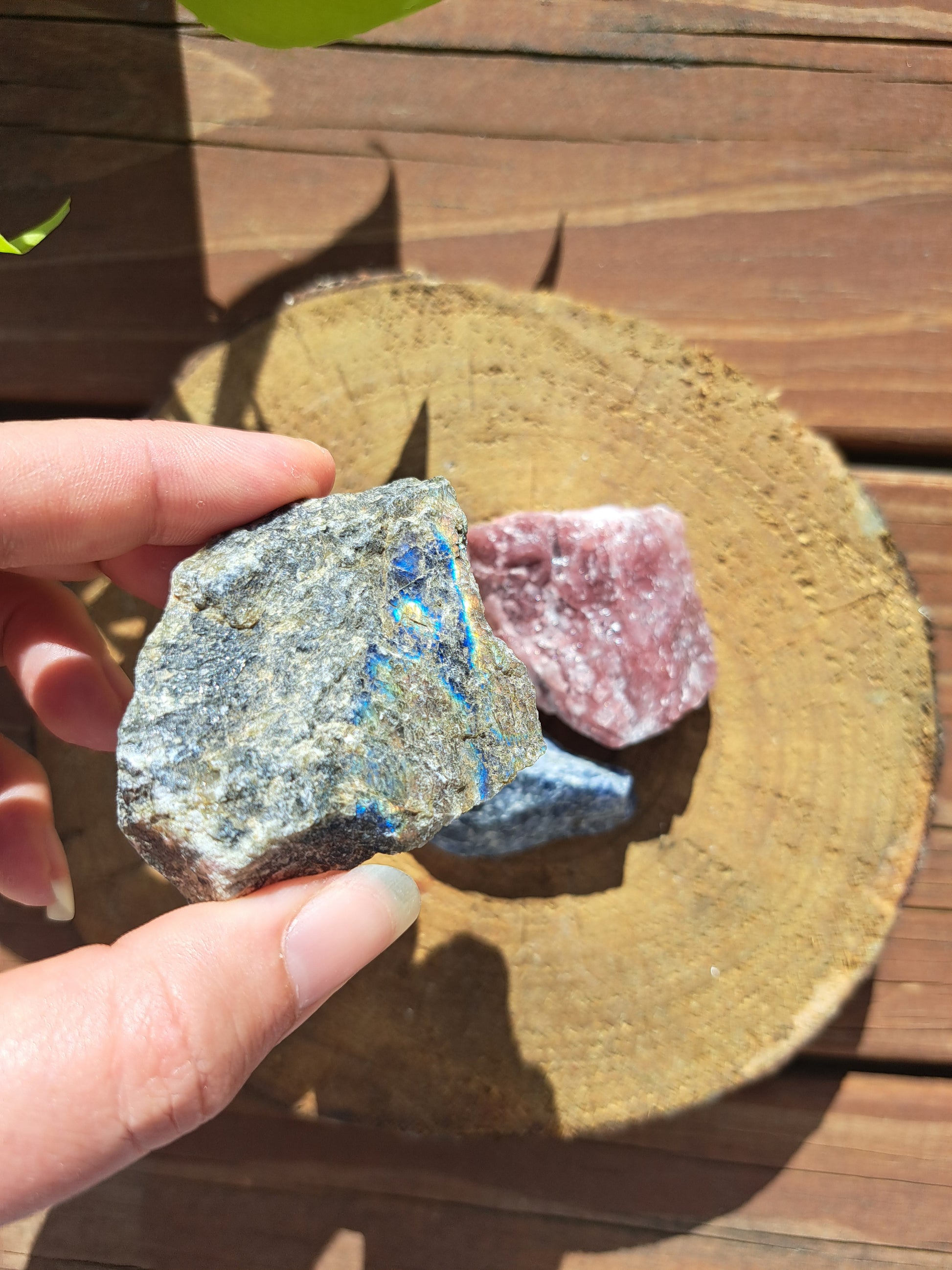 This bundle includes: Labradorite, strawberry quartz and sodalite