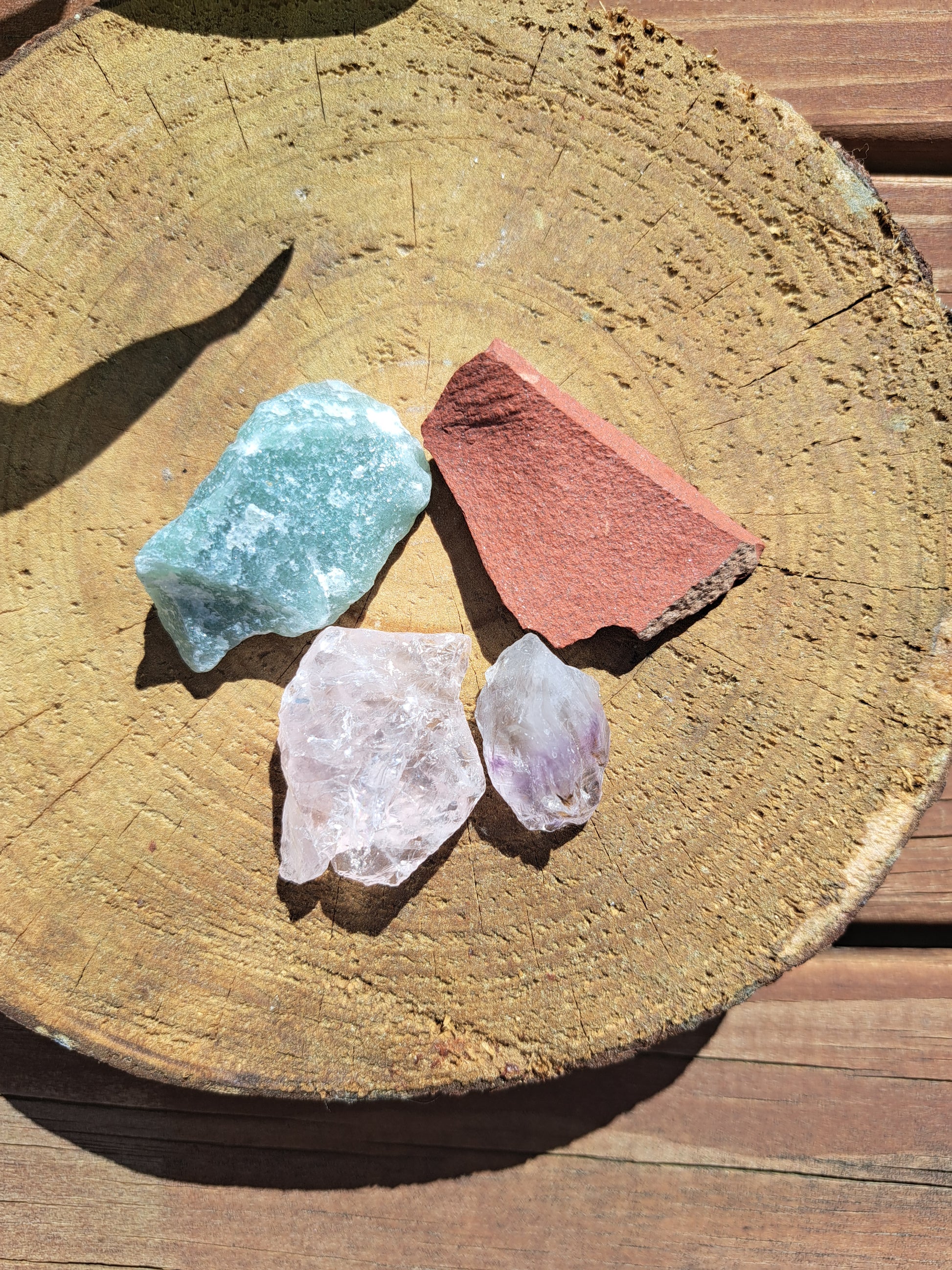 This bundle includes: Aventurine, red jasper, rose quartz and amethyst
